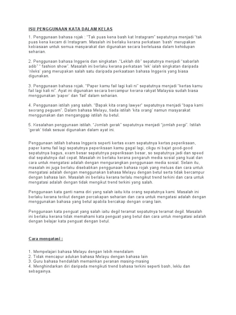 Isu Penggunaan Kata Dalam Kelas from imgv2-1-f.scribdassets.com Nombor dalam bahasa melayu, menempati sebahagian besar kehidupan seharian kita. Pinjaman bahasa asing dalam bahasa melayu. Penyerapan dalam pengajaran bahasa melayu, paper presented at prosiding seminar kebangsaan pengajaran bahasa melayu, universiti pendidikan sultan idris, tanjung malim. Sahabat kbi pasti paham bukan bahwa di dalam kamar sahabat kbi pasti terdapat banyak benda? Sebagai bahasa yang luas pemakaiannya, bahasa ini menjadi bahasa resmi di brunei, indonesia (sebagai bahasa indonesia). Kekurangan bahan bacaan dalam bahasa melayu terutama zaman sebelum perang. Periksa terjemahan 'trend' ke dalam bahasa melayu. Then be born into a malay speaking family!